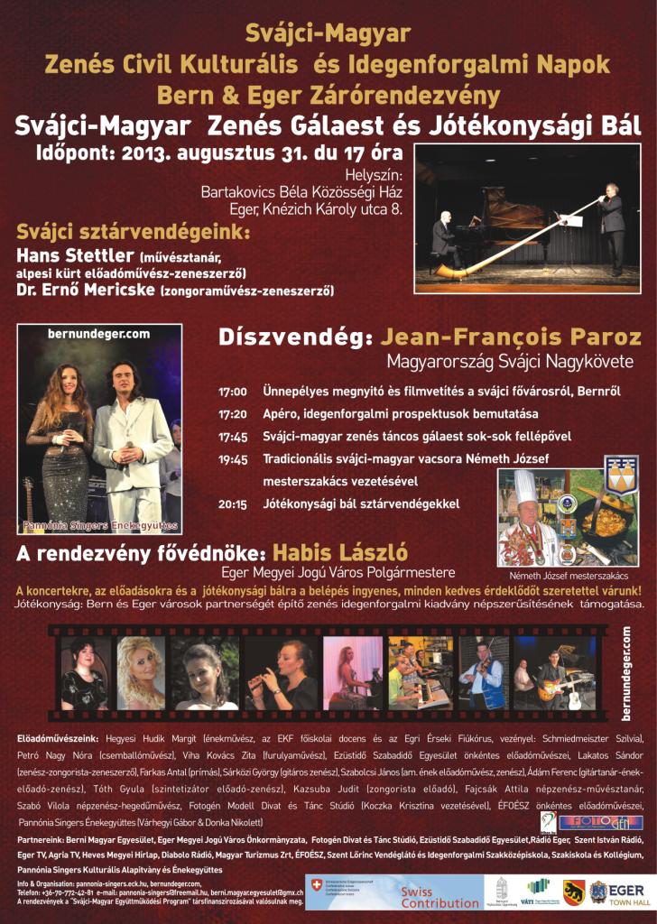 Partnerünk, a Pannónia Singers Kulturális Közhasznú Alapítvány Svájci-Magyar Zenés Civil Kulturális és Idegenforgalmi Napok c. projektje zárórendezvényére kerül sor szombaton, Egerben a Svájci Hozzájárulás program támogatásával, melyre mi is mindenkit szeretettel várunk.