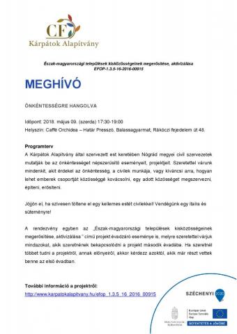 Meghívó "Önkéntességre hangolva" c. balassagyarmati rendezvényünkre